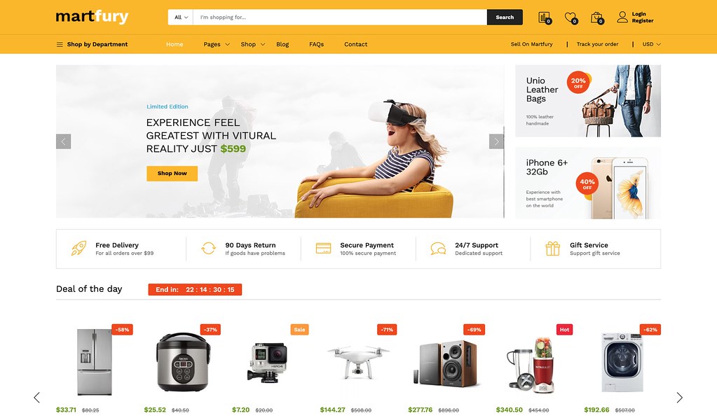 Martfury is a clean & modern Laravel Ecommerce System for multipurpose online stores. With design clean and trendy, Martfury will make your online store look more impressive and attractive to viewers. Help increase the high conversion rate to buy products with your customers so quickly. Designed on the grid system, your site will look sharp on all screens. Mobile optimized design based on user experience, brings the best shopping experience for your customers.
